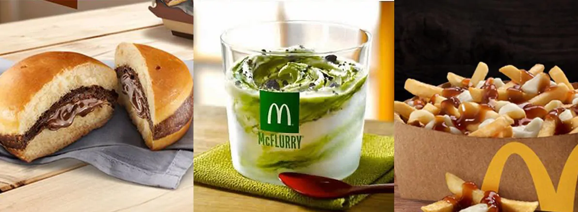O McDonald’s (e outras redes de fast food) inclusive vão além e personalizam produtos, oferecendo versões exclusivas para um ou outro país. A Itália serve uma versão do seu sanduíche recheada com Nutella; o Japão conta com um McFlurry de Matchá; já o Canadá oferece uma versão de seu famoso prato (Poutine) – um mix de batata frita, queijos e molho.