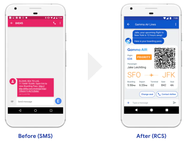 O RCS é um protocolo de mensagens para os usuários do Google/Android (com recursos de bate-papo similares ao iMessage da Apple). Com ele, as conversas podem incluir multimídia (navegador da web, mapas e imagens) e ocorrer entre empresas e a caixa de entrada nativa dos usuários.