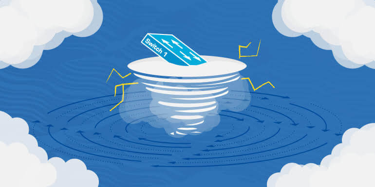 Os loops de redes Ethernet, onde um switch é conectado a outro através de mais de um cabo RJ45 ou Fibra óptica, são uma das principais causas do Broadcast Storm. Um protocolo desenvolvido para sanar esse problema é o Spanning-Tree porém, se ele estiver desabilitado, ou mal configurado, a tempestade será praticamente inevitável.