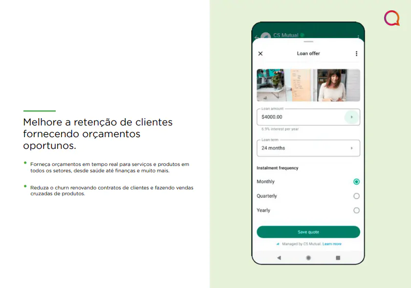 A novidade é que o WhatsApp Flow aproxima o fechamento do usuário com o fornecimento de orçamentos em tempo real para serviços dos mais diferentes setores. É redução de churn e retenção garantidas!