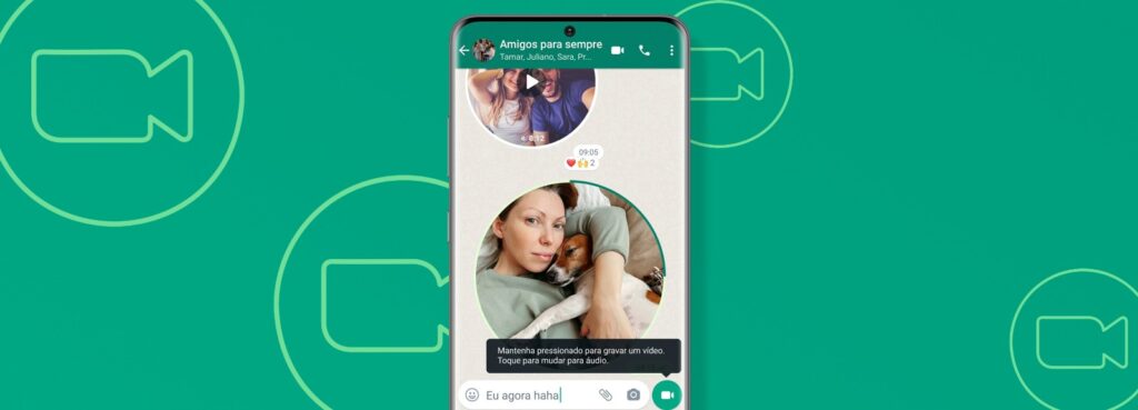 O WhatsApp trouxe mais uma novidade para você se comunicar com mais facilidade e segurança: as mensagens de vídeo instantâneas. Agora você pode enviar vídeos curtos e pessoais direto na conversa.